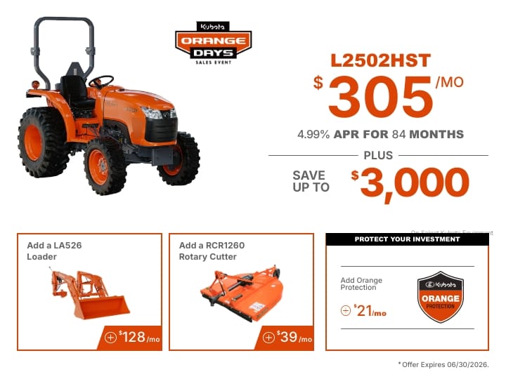 Finance price includes assembly, PDI, 6% sales tax, and KTAC insurance. All current rebates applied. Orange Protection program and K-Maintenance plans are available. Contact Canns-Bilco for more details.